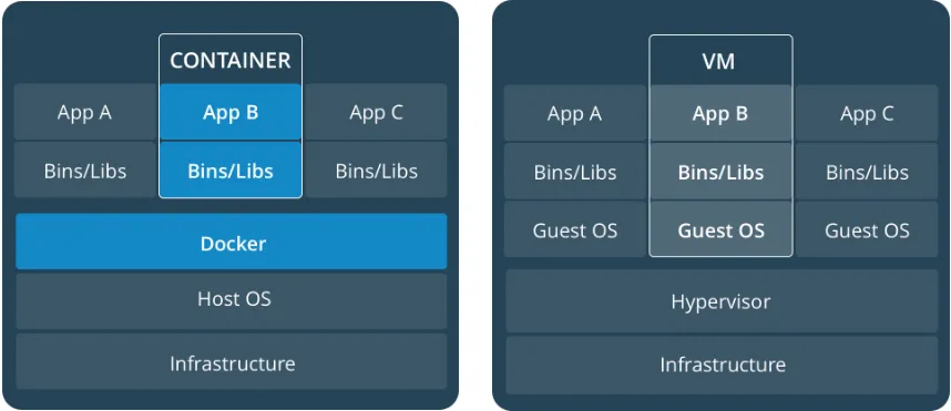 - 对比虚拟机技术,虚拟机为了提供完全的隔离运行环境在宿主环境上还需要模拟一套硬件和操作系统来运行程序,对于只需要隔离运行某个进程的环境来说开销太大
