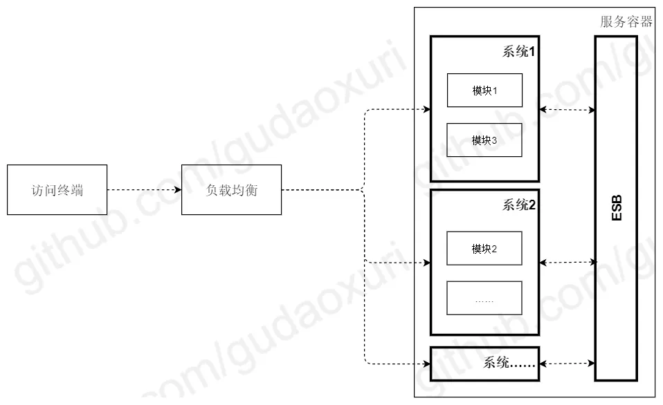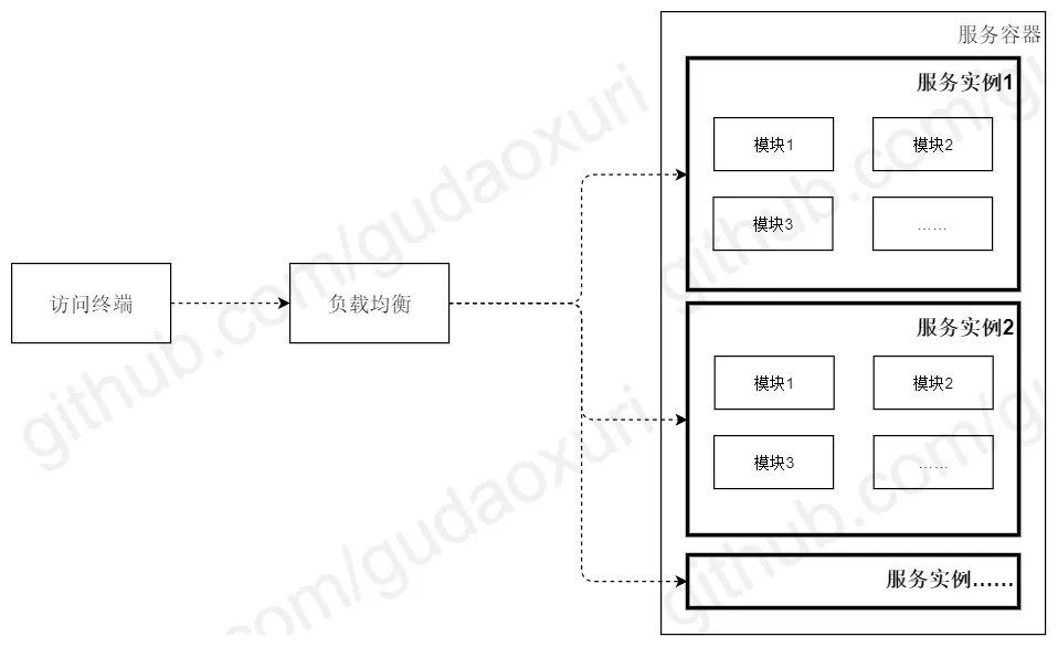 单体架构(monolithic software)是一种将所有功能和逻辑写在一个项目(或部署在一个项目/容器)中的写法,一个实例中集成了一个系统的所有功能,并通过负载均衡软件/设备实现多实例调用。