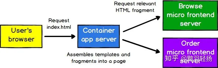 每个子服务负责渲染并服务于对应的微前端,主服务向各个子服务发起请求