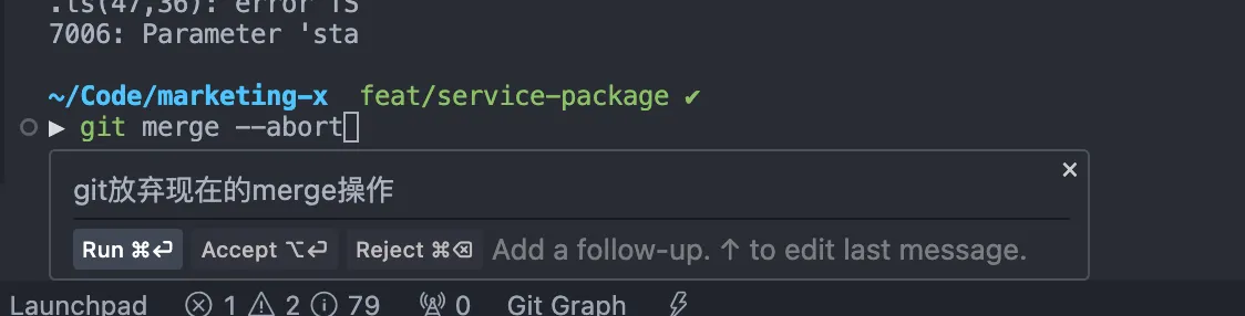 个人是经常记不住一些不常用的git操作的,这个时候我一般久唤起行内AI操作帮我写命令,省去了查询跳转的步骤。