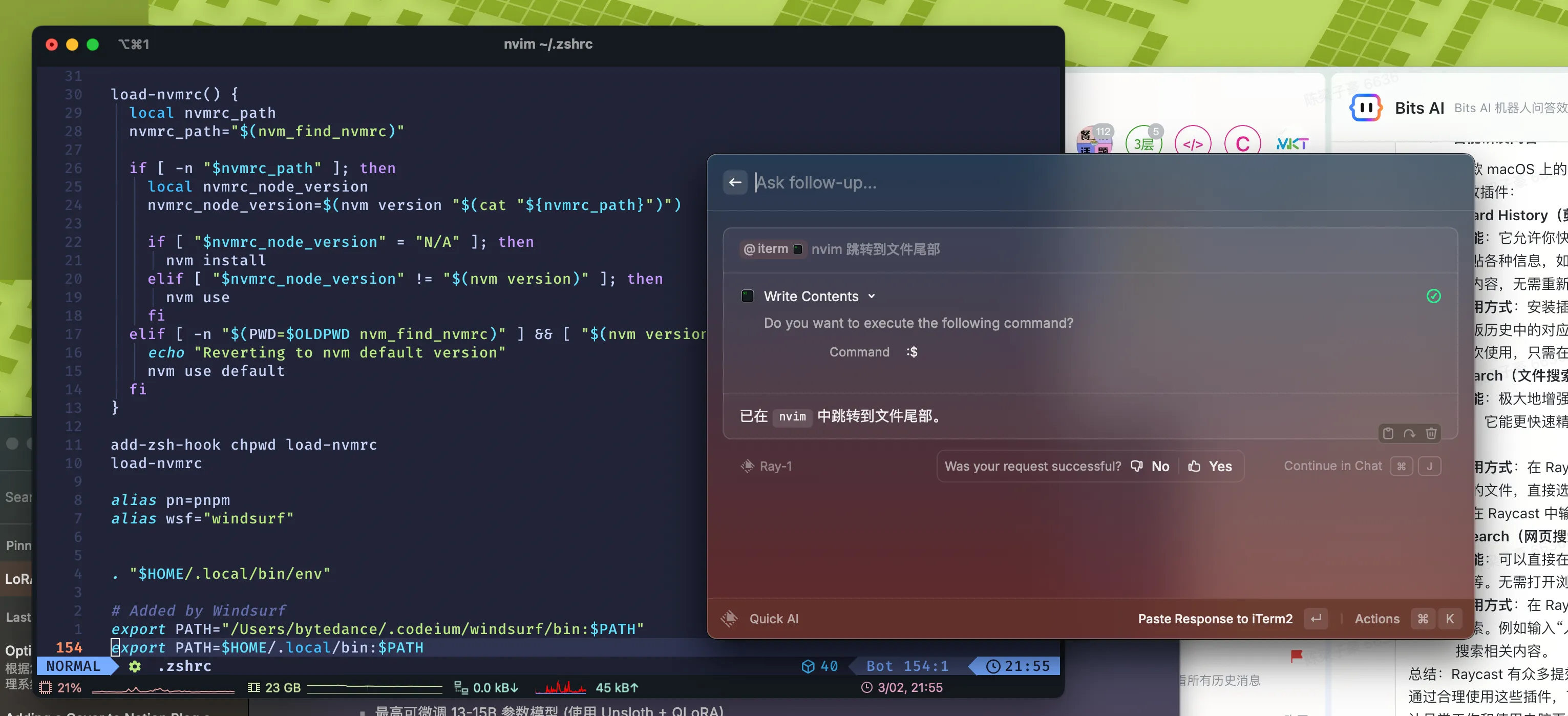 作为启动器,提供先前POE无法提供的上下文信息并调用我本机的工具,如直接从剪贴板或本地应用(Notion, 备忘录等)获取信息,或者执行Shell命令、操作Finder等,甚至可以替代我一部分其他AI工具
