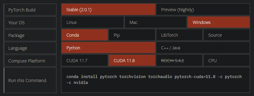 $ mamba install pytorch torchvision torchaudio pytorch-cuda=11.8 -c pytorch -c nvidia