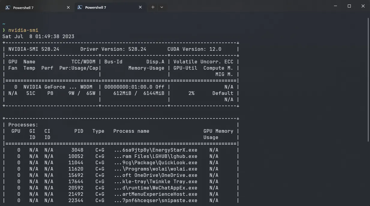 nvidia-smi查看显卡信息,可以看到我的cuda版本是12.0